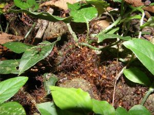Pavement ants are burrowing ants as well, but they will create their intricate network of tunnels and chambers underneath slabs of concrete or under your home’s foundation. And then there are army ants, which build temporary nests with their bodies, complete with tunnels and chambers to house their young and protect their queen.