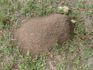One key aspect that differentiates fire ant mounts is that they do not have a hole in the center, like with most other ant mounds. You also won’t see many, if any, actual fire ants around an undisturbed mound. This is because the ants do not exit the colony through the mound but through underground tunnels connected to it. This allows the ants to safely travel back and forth to different places, such as food or water sources.