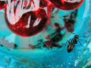 If you don’t have a moat, the lid of the hummingbird feeder is the first thing that ants will come into contact with. You can tackle the problem at this point of contact by coating the top of the hummingbird feeder with an insect spray. This works best when you place a secondary lid over the hummingbird feeder rather than using the primary lid that’s already in place. You want to make sure that the insecticide can’t get inside your feeder.