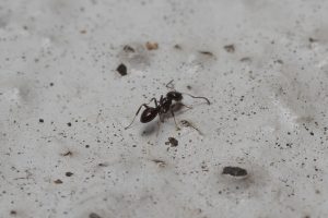 The scout ant goes out in search of food, and will meander outside and into homes until it discovers something suitable for eating. The ant eats some of the food, then goes back to its nest. These scout ants observe and memorize markers on the trail to the food so they can plot a route quickly back to the nest. Along the return route, the scout ant leaves a trail of pheromones (unique scents that create a map or guide to the food). The ants can track the scent trail to gather food. By following the scout’s pheromone trail, foraging ants gather and store food efficiently. The foraging ants then follow the path, each one adding more scent to the trail to reinforce it for others. The workers will continue walking back and forth along the line unless the food source disappears.